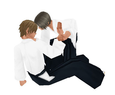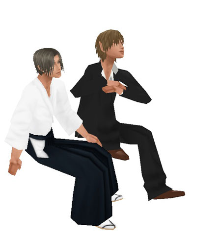 刀を回転させて鞘に収める若様と、その背中←かわいいね、えろいね